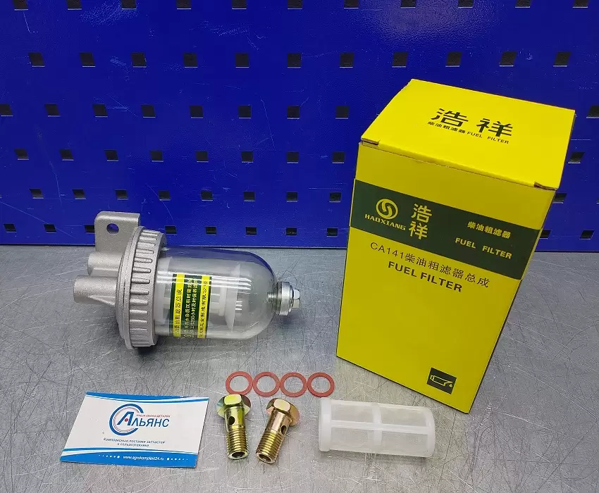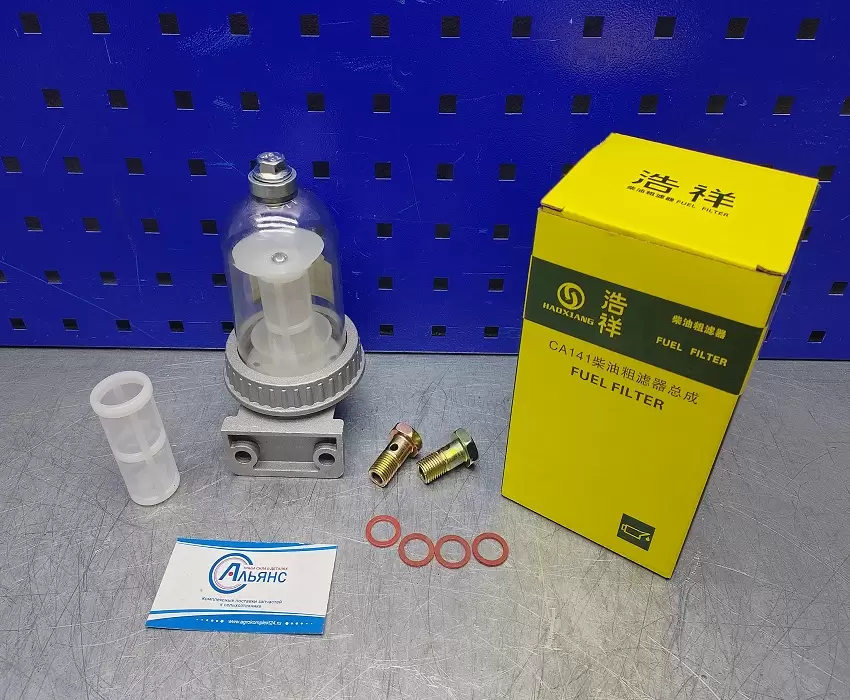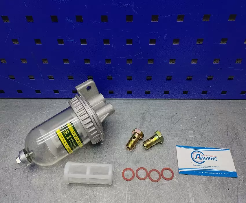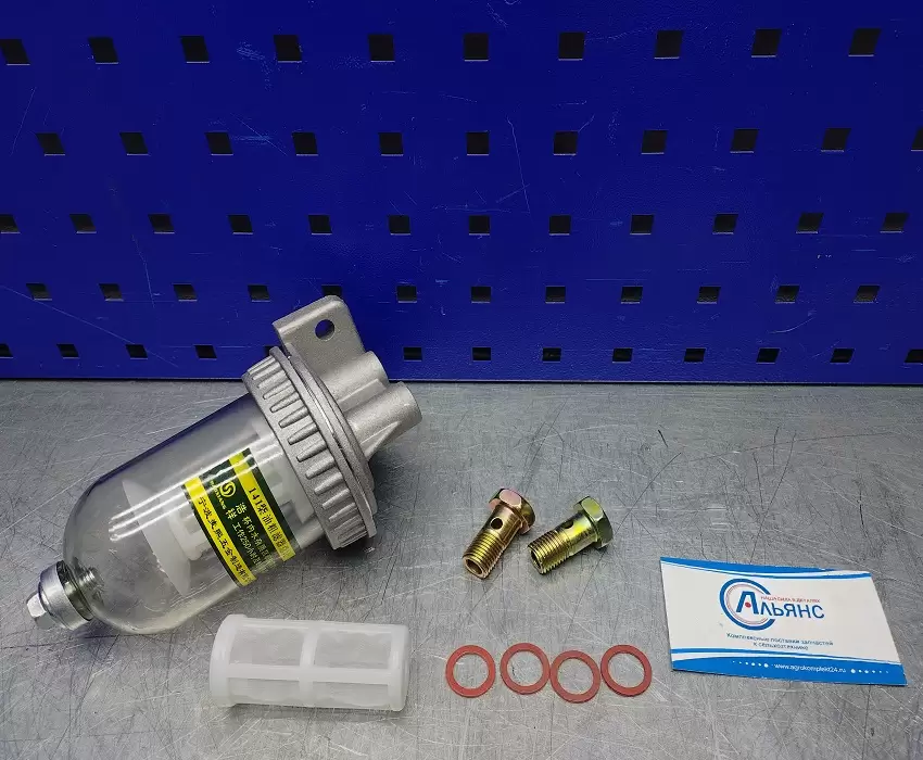 Не разбирая фильтр отстойник можно видеть уровень загрязнения фильтрующего элемента, и зафиксировать проникновение воды в топливную систему. Данный фильтр используют вместо фильтра очистки дизельного топлива МТЗ, и как вспомогательный фильтр в другие топливные системы.