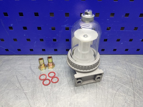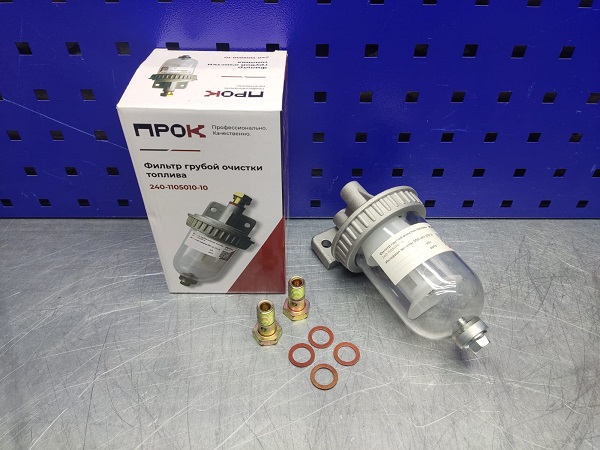 Не разбирая фильтр отстойник можно видеть уровень загрязнения фильтрующего элемента, и зафиксировать проникновение воды в топливную систему. Данный фильтр используют вместо фильтра очистки дизельного топлива МТЗ, и как вспомогательный фильтр в другие топливные системы Т-40, Т-25, ЮМЗ, Т-150.